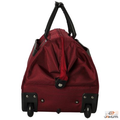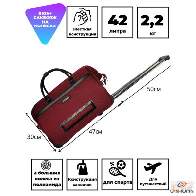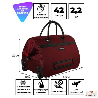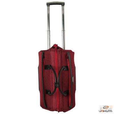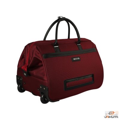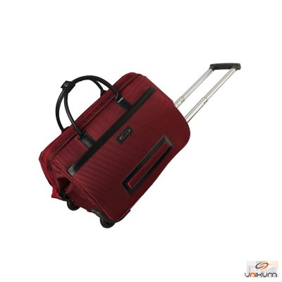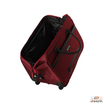 Сумка дорожная текстильная с жестким каркасом. Одно большое отделение, открывается сбоку, внутри находится карман на молнии, с внешней стороны сумки также имеется дополнительный карман на молнии, 2 колеса, телескопическая ручка с фиксацией в 2 положениях, кодовый замок на корпусе, боковая и верхняя ручка.